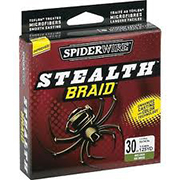 Spiderwire Stealth Braid has mono manageability and body, but has the ultra thin diameter, superior strength, and ultimate sensitivity that you are looking for in a premium braided line. Due to it´s Teflon treated micro-fibers, it´s super quiet, it flies through the guides giving you an even longer cast, and it won´t cut into your rod guides. Stealth holds it´s color better than the competition, and it´s round shape reduces backlashes and resists digging-in on reels